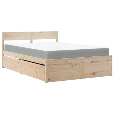 vidaXL Bed with Drawers and Mattress 140x190 cm Solid Wood Pine