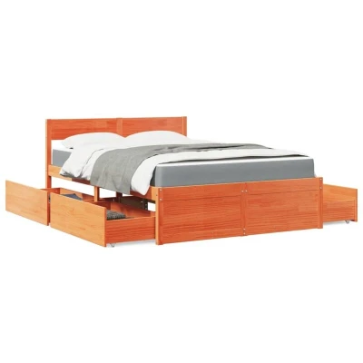 vidaXL Bed with Drawers and Mattress Wax Brown 140x190 cm Solid Wood Pine