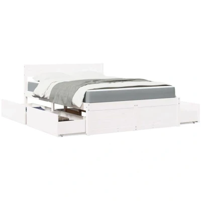 vidaXL Bed with Drawers and Mattress White 140x190 cm Solid Wood Pine
