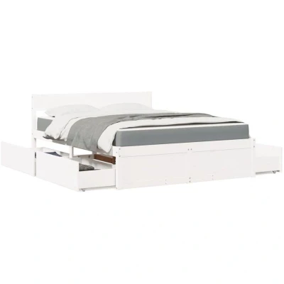 ManoManoGeneral description Featuring a simple yet timeless design, this bed is a practical and decorative addition to your bedroom. Made from solid pine wood, it showcases a beautiful natural material with a straight grain and rustic knots. The included pocket spring mattress provides personalized support, reducing motion transfer and preventing "roll-together". The bed also includes drawers for ample storage, keeping your room tidy. Technical specifications Bed frame: Colour: White Material: Solid pine wood Dimensions: 205.5 x 165.5 x 78 cm (L x W x H) Drawer dimensions: 95.5 x 47 x 25.5 cm (W x D x H) Mattress: Colour: White and light grey Cover material: Fabric (100% polyester) Filling material: Pocket springs, foam Firmness: Medium Dimensions: 160 x 200 x 20 cm (W x L x H) Installation Assembly required: Yes Other information For hygiene reasons, the mattress cannot be returned if the packaging is removed or opened. Delivery contains: 1 x Bed frame 1 x Mattress 4 x Bed drawer