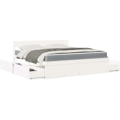 vidaXL Bed with Drawers and Mattress White 180x200 cm Super King Solid Wood Pine