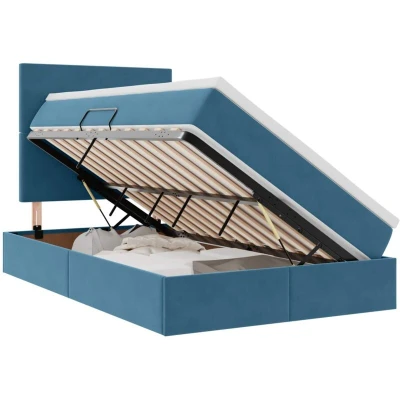 vidaXL Bed with Mattress Headboard Blue 120 x 190 cm Velvet