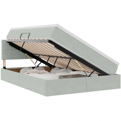 This Storage Bed with LED lighting features a modern design, incorporating a sleek velvet finish that brings a touch of sophistication to your bedroom. Its rectangular shape allows it to seamlessly fit into various bedroom layouts, complementing contemporary decor. Equipped with a powerful hydraulic lift system, the bed offers generous storage space beneath, ideal for those with limited room. Enjoy the customizable ambiance provided by energy-efficient LED strip lights, creating a soothing environment. Materials: The bed showcases premium velvet materials that offer a plush feel and an attractive appearance. This choice not only enhances visual appeal but also contributes to the comfort and overall luxurious aura of the bed. The velvet fabric is carefully selected for its soft touch, providing a cozy retreat after a long day. Included Components: Featuring a fixed slatted frame, this storage bed boasts a sturdy metal construction for reliable support and stability. The non-flexible slats offer a secure foundation for the mattress, ensuring durability and convenience. A thoughtful addition is the USB-powered LED strip lights, allowing you to customize the lighting for a peaceful ambiance. Features /Function /Design: The hydraulic lift mechanism offers ease of access to ample under-bed storage, which is perfect for keeping bed linens or seasonal garments neatly tucked away. This thoughtful design not only maximizes storage potential but also maintains a clean and organized sleeping environment. Recommended Uses: Ideal for bedrooms needing smart space solutions, this bed offers versatility for different room setups. The LED lighting can suit various moods, from winding down to preparing for sleep, making it an excellent addition to contemporary living spaces. Care &Maintenance: To retain its elegant look, occasional light vacuuming and spot cleaning with a damp cloth are sufficient. The sturdy components ensure that the bed remains a steadfast centerpiece in your home with minimal upkeep.