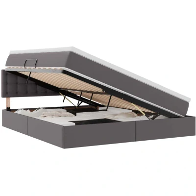 This Modern Storage Bed with Mattress brings together style, comfort, and functionality for the ultimate bedroom experience. Ideal for modern living, this bed seamlessly blends a sleek, minimalist design with practical features, enhancing any contemporary bedroom setup. Experience restful nights on the medium-firm mattress, complemented by an ergonomic headboard in sumptuous faux leather, while innovative lighting options and storage solutions meet everyday needs with sophistication. Faux Leather Finish Exquisitely wrapped in faux leather, this bed elevates any bedroom decor with its sleek and modern aesthetic. The material adds a touch of luxury, providing a smooth, durable, and practical surface that is easy to clean and maintain, ensuring longevity and an impeccable appearance. Under-bed Storage The cleverly designed hydraulic lift mechanism reveals a spacious storage compartment beneath the bed. This feature maximizes bedroom space and keeps your living area clutter-free, offering a convenient solution for stowing away extra bedding, pillows, or seasonal attire. LED Lighting Create a personalized ambiance with the RGB LED strip lights installed in the bed structure. The lighting is USB-powered, offering versatile and mood-enhancing illumination that caters to your preferred atmosphere, whether soft and serene or vibrant and lively. Comfortable Mattress The medium-firm mattress ensures balanced support, making it perfect for various sleep positions. Built with pocket springs and foam filling, the mattress promotes restful sleep by minimizing motion transfer, ensuring you wake up refreshed and revitalized. Assembly Required Assembling this bed requires two people with a screwdriver to ensure stable and secure setup. Comprehensive instructions provide step-by-step guidance for efficient assembly, making the setup process straightforward and hassle-free.