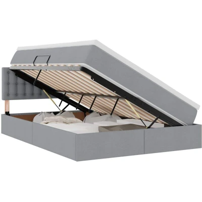 This Modern Storage Bed with Mattress is a blend of functionality and style, ideal for contemporary bedrooms. Its sleek, rectangular shape and minimalistic design are complemented by smart features like under-bed storage accessible through a hydraulic lift mechanism, making it perfect for those who value space efficiency and modern aesthetics. The black finish on the frame and the polyester material give the bed a sophisticated look, while the medium-firm mattress ensures comfort for all sleeping positions. Overall, this bed transforms any bedroom into a modern haven, balancing looks and utility. Quality Materials: The bed features a durable metal frame paired with a soft polyester headboard and mattress, ensuring long-term comfort and stability. This combination offers both aesthetic appeal and practicality, providing users with a supportive structure that withstands everyday use while reflecting modern, sleek lines that complement any bedroom decor. Integrated Components: Includes an under-bed storage compartment that utilizes a hydraulic lift mechanism for easy access. This thoughtful design enhances bedroom organization by allowing users to store essentials out of sight yet within reach. The RGB LED strip lighting, powered by a USB port, adds a touch of personalization and ambiance, highlighting the bed's modern features. Unique Features: The bed's key feature is its hydraulic lift mechanism that allows effortless access to a large storage area beneath the mattress. This functional design offers versatility and space-saving benefits in compact living environments, making it a practical choice for urban dwellers. Versatile Uses: Beyond its primary function as a bed, this piece suits various bedroom styles, from minimalistic to modern chic. The under-bed storage is ideal for storing linens, pillows, or seasonal clothing, maximizing space efficiency in guest rooms or master bedrooms, proving its capability in diverse settings. Simple Maintenance: Easy to maintain by regular dusting and keeping the LED strips dry. The polyester materials require minimal cleaning, making the bed both convenient and resilient for everyday use. This ensures the bed remains aesthetically pleasing while being practical for busy lifestyles.