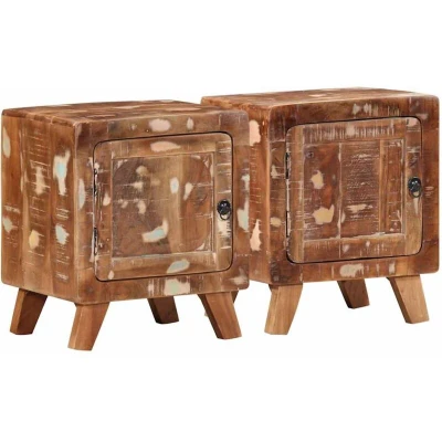 Introduce an air of charm into your existing room decor with these stylish bedside cabinets! Robust and stable: Solid reclaimed wood consists of reused timbers such as teak, mango wood, pinewood, and beech. These materials are recycled from old buildings such as factories, sheds, and boats. Signs of wear and visible grain structure give each piece its own history and a unique look.Wooden legs: The nightstand is supported by sturdy wooden legs, ensuring stability, safety, and firmness.Ample storage space: The bedside nightstand provides ample storage space for magazines, books, glasses, and other bedtime essentials, keeping them organised and within reach.Sturdy top: The sturdy top of the bedside stand is perfect for placing table lamps, alarm clocks, books, picture frames, small potted plants, decorations or other essentials.Practical door: The door of the bed cabinet provides enclosed storage space to keep your belongings organised, protected, and out of sight. Good to know:Each item is unique with variations in colours and grains. The delivery is random, ensuring the exclusivity and individuality of your product.