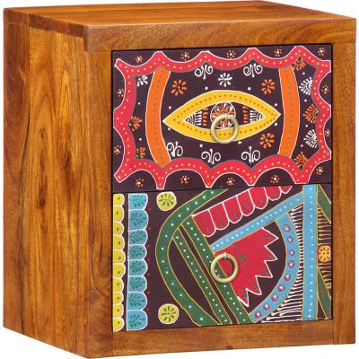ManoManoGeneral description This beautifully designed wall-mounted bedside cabinet seamlessly mixes Bohemian and modern styles. With its vibrant texture and smooth design, it stands out in any bedroom. The hand-painted surfaces and natural materials give it a warm, luxurious vibe with a quirky twist. Being wall-mounted saves floor space while providing a perfect spot for your lamp or personal items. Its unique charm strikes a lovely balance between a free-spirited aesthetic and practical features, making it an ideal addition to any bedroom. Technical specifications Colour: Brown Material: Solid acacia wood Overall dimensions: 35 x 30 x 40 cm (W x D x H) With drawer: Yes Mounting type: Wall-mounted Assembly required: Yes EAN: 8721158376206 SKU: 4016519 Brand: vidaXL Usage Storage-Enhanced Design: Features a classic drawer with shiny ring pull handles for a practical yet stylish look, providing ample room to store your essentials within reach. Easy Maintenance: To keep this cabinet looking