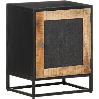 VidaXLThis industrial-style wooden bedside cabinet makes a great addition to your interior. It can also be used as a nightstand or side table. The side cabinet is made of rough mango wood, a tropical hardwood with the strength to bear the weight. It also stands the wear and tear of time, making it stable and durable. The powder-coated iron frame also adds extra stability. The nightstand has a sturdy top to place a bedside lamp, alarm clock or anything else you might need. This bedside table features a large compartment behind the door with hand carved pattern, providing ample space for keeping smaller items organised and within reach. Important note: Colours and grains vary from piece to piece, making each piece unique. The delivery is random, ensuring the exclusivity and individuality of your product.