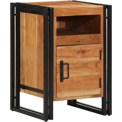 ManoManoGeneral description This wooden bedside cabinet with an elegant design makes a timeless addition to your interior decor. Crafted from solid acacia wood, it is known for its strength and durability, featuring diverse colors and unique grain patterns that enhance its attractive appearance. With good stability and resistance to weathering, it is ideal for both indoor and outdoor furniture. Technical specifications Material: Solid acacia wood, iron Dimensions: 40 x 40 x 59 cm (L x W x H) Includes: 1 shelf and 1 door Assembly required: Yes Usage Ample storage space for magazines, books, glasses, and other bedtime essentials, keeping them organized and within reach. The sturdy top is perfect for placing table lamps, alarm clocks, books, picture frames, small potted plants, decorations, or other essentials. The practical handle provides a comfortable grip for easy opening and closing of the cabinet. Other information Warning: To prevent it from tipping over, this product must be used with