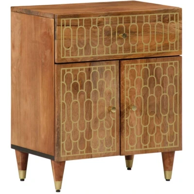 This bedside cabinet with an elegant design makes a timeless addition to your interior decor. Solid mango wood: Solid mango wood is a strong, tropical hardwood that makes sturdy furniture. Its beautiful wood grains make every piece of furniture slightly different from the next. Made of solid mango wood, the cabinet is durable and stable.Ample storage space: The bedside table is designed with 1 drawer and 2 doors to keep things organised and within easy reach.Stable top: The top of the side cabinet is perfect for displaying your decorative items, picture frames and potted plants.Sturdy legs: The iron legs add to the bedroom furniture's sturdiness and stability.Retro style: This bed side cabinet with hand-carved floral patterns brings the luxury of retro style to your interior, being the focal point of your room. Good to know:Each item is unique with variations in colours and grains. The delivery is random, ensuring the exclusivity and individuality of your product. Warning:To prevent it from tipping over, this product must be used with the provided wall attachment device.