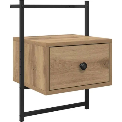 ManoManoGeneral description This Modern Bedside Cabinet is perfect for those who appreciate simplicity and functionality in their bedroom decor. With its sleek, rectangular shape and modern aesthetic, it fits effortlessly into contemporary settings. Its combination of engineered wood and metal materials gives it a robust and durable feel, while the matte finishes add a touch of sophistication. This cabinet is ideal for organizing bedside essentials, making your bedroom look neat and elegant. Technical specifications Colour: Artisan oak Material: Engineered wood Overall dimensions: 35 x 30 x 51 cm (L x W x H) Max weight: 60 kg Assembly required: Yes EAN: 8721288917324 SKU: 882165 Brand: vidaXL Compatibility and accessories With drawer Integrated storage space for books, chargers, and personal belongings Installation Assembly required Usage Ideal for organizing bedside essentials Easy maintenance: can be wiped clean with a damp cloth Other information