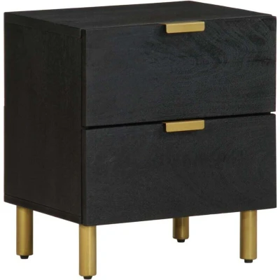 General description This wooden bedside cabinet will make a decorative as well as practical addition to your decor. Crafted from solid mango wood, it offers a robust and stable structure, ensuring durability and longevity. The unique wood grains make each piece slightly different, adding character to your space. With ample storage space, the nightstand features 2 drawers and 1 door, perfect for storing and displaying books, magazines, and decorative items. Technical specifications Colour: Black Material: Solid mango wood with sandblasted black finish, engineered wood Dimensions: 40 x 33 x 46 cm (L x W x H) Storage: 1 door and 2 drawers Assembly required: Yes Other information