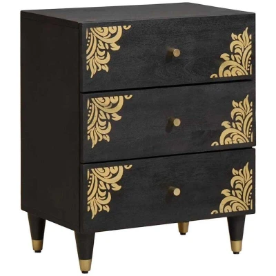 ManoManoThis Modern Bedside Cabinet redefines the contemporary aesthetic for bedrooms with its seamless integration of design and utility. Crafted specifically to complement modern interiors, this bedside table exhibits clean lines and minimal ornamentation, crafted to suit a sophisticated lifestyle. It serves as a stylish companion for your bedroom essentials, offering convenience and elegance in equal measure. Solid Mango Wood Construction: The bedside cabinet is expertly crafted from solid mango wood, lending it both strength and natural elegance. The wood’s rich texture enhances its visual appeal, making it a captivating focal point in any bedroom. This material’s inherent durability ensures that the cabinet stands up to everyday use, providing long-lasting support for your nighttime essentials. Brass Components: Complementing the sturdy build, the cabinet features brass knobs and legs. These elements not only add a touch of luxurious sophistication but also contribute to the piece's