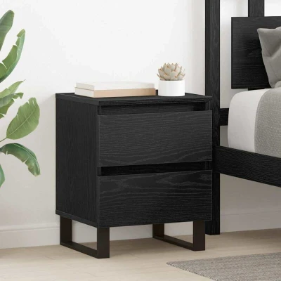 ManoManoGeneral description Meet your new favorite piece – the Engineered Wood Bedside Cabinet. It's super versatile and fits in with any bedroom style. The rustic look adds a splash of natural charm to your space, enhancing the overall vibe. This handy bedside cabinet is perfect for keeping your nightly essentials close at hand. With its sleek matte finish, it seamlessly integrates with both modern and rustic decor, providing both storage and a stylish upgrade for your room. Technical specifications Colour: Black oak Material: Engineered wood Overall dimensions: 40 x 35 x 50 cm (L x W x H) Max weight: 60 kg Assembly required: Yes EAN: 8721288915368 SKU: 881918 Brand: vidaXL Included Components Traditional drawers with easy-pull handles for effortless organization Steel frame for added stability Features / Function / Design Strong build quality and ample storage Robust enough for daily use Spacious drawers for keeping items neat and tidy Ideal for stashing books, lamps, or decor Care &