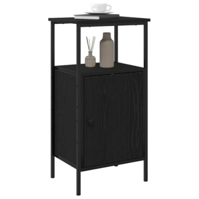 ManoManoGeneral description This Wooden Bedside Cabinet perfectly mixes style and function. Its rectangular shape and sturdy engineered wood not only look smart but are built to last. It fits in with various home styles, making it ideal for stashing away your bits and bobs while sprucing up your space. Technical specifications Colour: Black oak Material: Engineered wood Overall dimensions: 41 x 31 x 80 cm (L x W x H) With 1 shelf Durable Assembly required: Yes EAN: 8721158772893 SKU: 862917 Brand: vidaXL Usage Versatile storage solutions with shelves for books, glasses, and bedtime items. Functional hinged doors for easy access and to keep items dust-free. Ergonomic knob handles that are easy to use and stylish. Simple maintenance with regular dusting and avoiding harsh chemicals. Other information