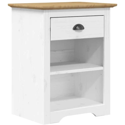 VidaXLWith a simple French design, this bedside cabinet fits easily into your bedroom and adds a timeless charm to your interior. Solid pine wood: Solid pine wood is a beautiful natural material. Pine wood has a straight grain, and the knots give the material its signature, rustic look.Ample storage space: The bedside table features 1 drawer and 2 open compartments to keep your various daily essentials well organised and within easy reach.Displaying function: You can also place your favourite photos, decorations, or flowers on top of the cabinet to enrich your life.Metal handle: The metal handle of the side table makes it convenient to open and close the drawer and makes the nightstand more attractive.Charming French style: Add an inspiring French style to your interior decor! Warning:To prevent it being overturned, this product must be used with the provided wall attachment device.