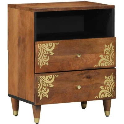 ManoManoGeneral description The Modern Bedside Cabinet is a must-have in any bedroom, blending style with practicality. Its sleek rectangular shape and elegant lines suit any modern decor. The warm wood tones and contemporary design make it a lovely focal point while keeping your essentials handy. Its compact size fits nicely beside your bed, perfect for a lamp, an alarm clock, or that book you’ve been itching to read. Technical specifications Colour: Honey brown Material: Solid mango wood Overall dimensions: 50 x 33 x 62 cm (L x W x H) With drawer With 1 shelf Durable Hand-painted front Assembly required: Yes EAN: 8721158497451 SKU: 4018746 Brand: vidaXL Included Components This Modern Bedside Cabinet features a classic drawer with shiny golden knobs for easy access and a spacious area for your bits and bobs. The shelf underneath is great for keeping your favorite books or gadgets close by, making the most of your space. Care & Maintenance Keeping this cabinet in good condition is easy. Just