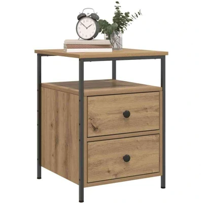vidaXL bedside cabinet/nightstand artisan oak engineered wood with 2 drawers & open compartment, modern bed side table metal legs, dimensions 44x45x60 cm for living room, bedroom