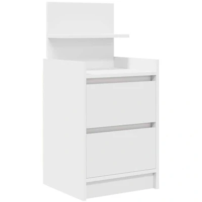 ManoManoGeneral description Introduce an air of charm into your existing room decor with this stylish bedside cabinet. It features a stable and durable design, making it a reliable choice for your bedroom essentials. Technical specifications Colour: White Material: Engineered wood Overall dimensions: 38 x 34 x 80 cm (W x D x H) Number of drawers: 2 Total weight capacity: 60 kg Weight capacity per drawer: 5 kg Assembly required: Yes Installation To prevent it from tipping over, this product must be used with the provided wall attachment device. Usage The bedside table provides ample storage space for magazines, books, glasses, and other bedtime essentials, keeping them organized and within reach. The sturdy top is perfect for placing table lamps, alarm clocks, books, picture frames, small potted plants, decorations, or other essentials. Other information