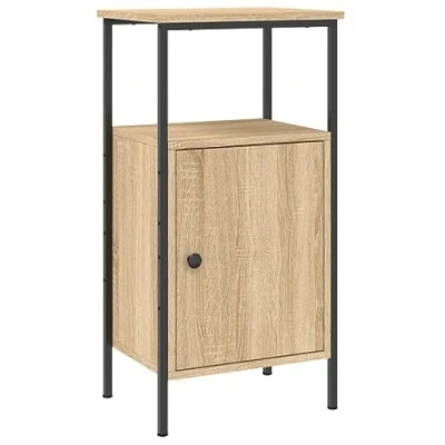 General description This bedside cabinet with an industrial style makes a timeless addition to your interior decor. Technical specifications Colour: Sonoma oak Material: Engineered wood, iron Dimensions: 41 x 31 x 80 cm (L x W x H) Assembly required: Yes Usage Ample storage space for keeping your various daily essentials well-organised and within easy reach. Can be used to display your favourite photos, decorations, or flowers on top of the nightstand. Other information Durable material: The engineered wood is of exceptional quality with a smooth surface, featuring strength, stability, and resistance to moisture. Sturdy frame: The iron frame ensures sturdiness and stability. Adjustable feet: Equipped with 4 adjustable feet to protect your floor from scratches and maintain stability on uneven surfaces. Warning: To prevent it from being overturned, this product must be used with the provided wall attachment device.