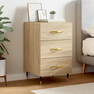 VidaXLIntroduce an air of modern charm to your interior with this bedside cabinet! Durable material: The engineered wood is of exceptional quality with smooth surface and also features strength, stability and resistance to moisture. Spacious storage: The bedside cabinet has drawers, providing spacious storage space to keep your books, multimedia appliances and other items within reach.Displaying function: You can also place your favourite photos, decorations or flowers on top of the side cabinet to enrich your life. Metal feet: The metal feet add a calm style to your interior while ensuring stability. Warning: To prevent it being overturned, this product must be used with the provided wall attachment device.
