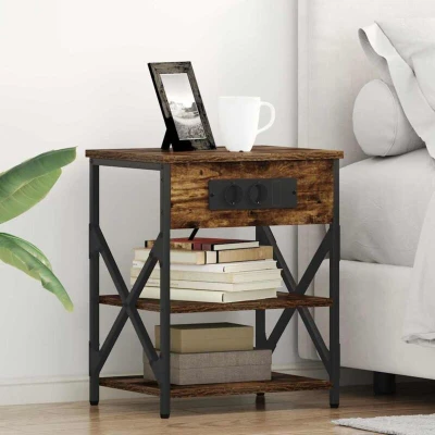 vidaXL Bedside Cabinet with Charging Station 2 pcs Smoked oak