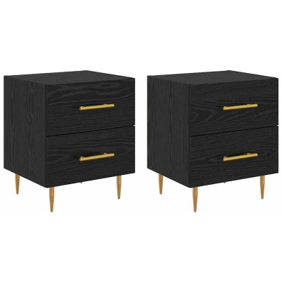 vidaXL Bedside Cabinet with Drawer 2 pcs Black Oak 40 x 35 47.5 cm