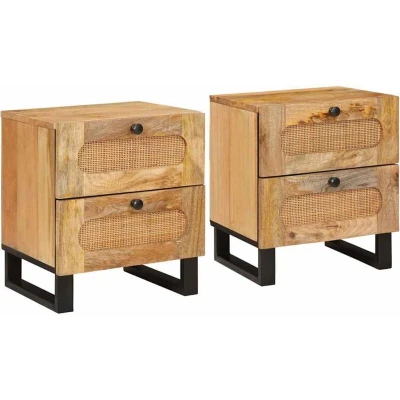 ManoManoThis sleek and contemporary bedside cabinet brings both function and style to any bedroom, crafted from solid mango wood that showcases a rich, natural hue. Its smooth, rectangular profile adds a sophisticated touch to your living space, while the warm tones effortlessly complement various decor styles. Positioned next to your bed, this charming piece offers a convenient surface for a lamp and other nighttime essentials, making it perfect for anyone seeking to enhance their bedtime routine and bedroom aesthetics. Sturdy Mango Wood Construction The bedside cabinet is made from solid mango wood known for its strength and resilience. This material offers a natural look, bringing warmth and texture to your bedroom. Its robust nature ensures stability and longevity, providing a durable foundation for daily use. The wood's rich tones and subtle grain patterns create an inviting atmosphere and adapt well to both modern and traditional settings. Functional Storage Drawers Equipped with two