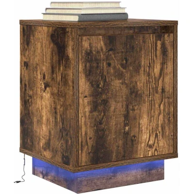 vidaXL Bedside Cabinet with LED Lights Smoked Oak 38x34x50 cm