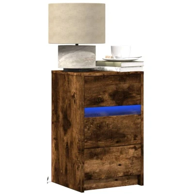 vidaXL Bedside Cabinet with LED Lights Smoked Oak Engineered Wood