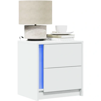 vidaXL Bedside Cabinet with LED Lights White Engineered Wood