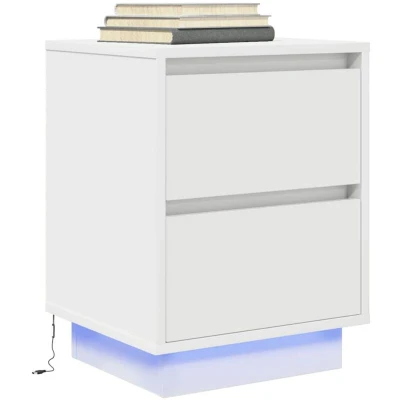 vidaXL bedside cabinet/nightstand with LED lights white 38x34x50 cm engineered wood, 2 drawers, modern bedroom decor