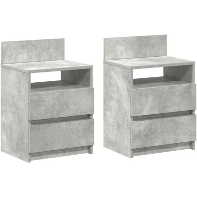 ManoManoGeneral description These bedside cabinets combine style and practicality, making them an excellent choice for your bedroom. Whether you're reaching for your favorite book or storing nighttime essentials, they offer ample storage and easy access. Technical specifications Colour: Concrete grey Material: Engineered wood Overall dimensions (each): 40 x 33 x 60 cm (W x D x H) Dimensions of drawer (each): 40 x 33 x 14 cm (W x D x H) Number of drawers: 2 Total weight capacity: 60 kg Weight capacity per drawer: 5 kg Assembly required: Yes Delivery contains: 2 x Bedside cabinet Installation To prevent tipping, this product must be used with the provided wall attachment device. Usage Ideal height for easy access from the bed. Easy to clean with a damp cloth due to its smooth surface. Designed for functionality and convenience, helping to keep your bedroom organized. Other information