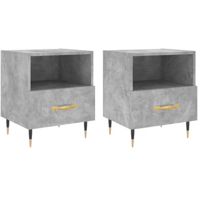 ManoManoGeneral description Introduce an air of modern charm to your interior with these stylish bedside cabinets. Crafted from high-quality engineered wood, these cabinets offer both durability and aesthetic appeal. Technical specifications Colour: Concrete grey Material: Engineered wood, iron Dimensions: 40 x 35 x 47.5 cm (W x D x H) Assembly required: Yes Delivery contains: 2 x Bedside cabinet Usage Spacious storage space with a compartment and a drawer for books, multimedia appliances, and other items. Top surface can be used to display photos, decorations, or flowers. Other information