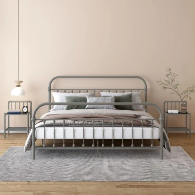 vidaXL Bedside Cabinets 2 pcs Grey and Black Metal Glass