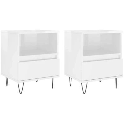 General description These trendy bedside cabinets, featuring a sleek and classic design, are meant to upgrade your interior to the next level. Made of high-quality engineered wood, they offer durability and a smooth surface, making them easy to clean. Technical specifications Colour: High gloss white Material: Engineered wood, metal Dimensions: 40 x 35 x 50 cm (L x W x H) Assembly required: Yes Usage Ample storage space: Each bedside table has a drawer and a compartment, providing ample space to keep your magazines, books, remote controls, and other small items well organized and within reach. Sturdy top: The sturdy top of the nightstand is ideal for displaying decorative objects, photo frames, and potted plants. Other information Warning: To prevent it from being overturned, this product must be used with the provided wall attachment device. Delivery contains: 2 x Bedside cabinet