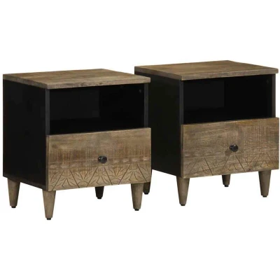 These bedside cabinets with an elegant design make a timeless addition to your interior decor. Robust and stable material: Solid mango wood, a robust tropical hardwood, is highly favoured for furniture making for its exceptional durability and strength. Its beautiful wood grains make every piece of furniture slightly different from the next.Ample storage space: The bedside table provides ample storage space for magazines, books, glasses, and other bedtime essentials, keeping them organised and within reach.Versatile use: This nightstand is not only for the bedroom, it can also be used as a side table in the living room, or extra storage space in any room, seamlessly adapting to your needs.Wooden legs: The bed cabinet is supported by sturdy wooden legs, ensuring stability, safety, and firmness. Good to know:Each item is unique with variations in colours and grains. The delivery is random, ensuring the exclusivity and individuality of your product.