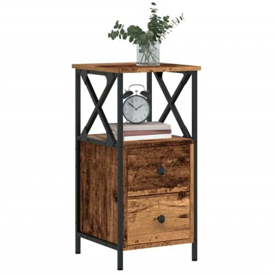 ManoManoGeneral description These trendy bedside cabinets, featuring a sleek and classic design, are meant to upgrade your interior to the next level. Made of high-quality engineered wood, they offer a smooth surface along with strength, stability, and moisture resistance. The cabinets are easy to clean with a damp cloth and provide ample storage space with two drawers and a compartment for organizing magazines, books, remote controls, and other small items. Technical specifications Colour: Old wood Material: Engineered wood, metal Overall dimensions: 34 x 35.5 x 70 cm (L x W x H) Assembly required: Yes Delivery contains: 2 x Bedside cabinet Other information Warning: To prevent it from tipping over, this product must be used with the provided wall attachment device. SKU: 857251