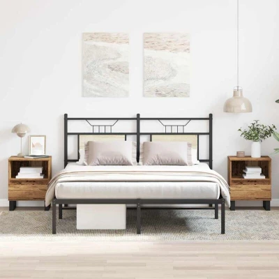 ManoManoGeneral description These trendy bedside cabinets, featuring a sleek and classic design, are meant to upgrade your interior to the next level. Made of high-quality engineered wood, they offer a smooth surface along with strength, stability, and moisture resistance. The cabinets are easy to clean with a damp cloth and provide ample storage space with a drawer and a compartment for organizing magazines, books, remote controls, and other small items. Technical specifications Colour: Old wood Material: Engineered wood, metal Dimensions: 40 x 35 x 50 cm (L x W x H) Assembly required: Yes Other information Sturdy top ideal for displaying decorative objects, photo frames, and potted plants. Metal legs add a modern touch while ensuring stability. Warning: To prevent it from being overturned, this product must be used with the provided wall attachment device.