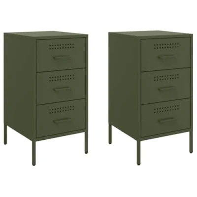 vidaXL Bedside Cabinets 2 Pcs with 3 Drawers Cold Rolled Steel, Olive Green, 36x39x68 cm, Adjustable Feet Ideal for Living Room and Bedroom Storage