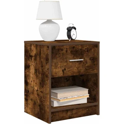 vidaXL bedside cabinets 2 pcs with drawers smoked oak finish modern engineered wood nightstands ample storage for bedroom essentials, featuring drawer and open shelving easy to assemble...