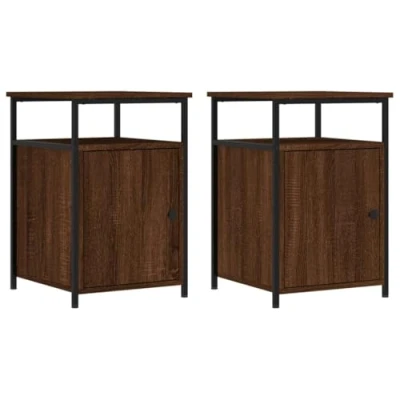 vidaXL Bedside Cabinets in Brown Oak, 2 Piece Set, Ideal for Bedroom and Living Room, Featuring Sturdy Iron Frame & Adjustable Feet