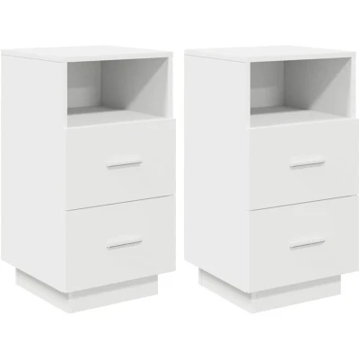 vidaXL bedside cabinets modern white nightstands/bedside tables with drawers & open compartment engineered wood furniture for bedroom/living room, 36x36x68 cm