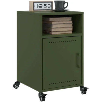 General description These bedside cabinets with a stylish design make a timeless addition to your interior decor. They are made of cold-rolled steel, which is known for its smoother surface, greater strength, and higher precision. The cabinets offer ample storage space for keeping your magazines, books, remote controls, and other small items well-organized and within reach. Technical specifications Colour: Olive green Material: Cold-rolled steel Dimensions: 36 x 39 x 59 cm (L x W x H) With 1 door With 2 compartments Assembly required: Yes Delivery contains: 2 x Bedside cabinet Usage Easy to maintain: The table is easy to clean with a damp cloth and requires less maintenance. Easy to move: This end table has 4 wheels, making it flexible to move and park stably at any time. Practical handle: The bed cabinet comes with a handle that makes it easy to open and close the cabinet while also adding extra beauty. Other information