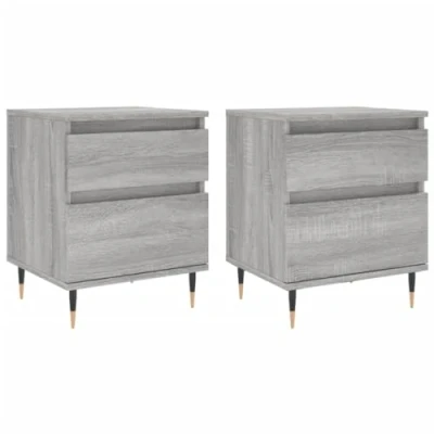vidaXL Bedside Cabinets Set of 2, Grey Sonoma Engineered Wood and Metal Nightstands, Classic Design with Ample Storage Space for Bedroom Lounge Area