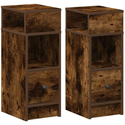 vidaXL Bedside Cabinets Set of 2 Smoked Oak Nightstands With Drawer Engineered Wood Modern Bedroom Tables 25x31x66 cm