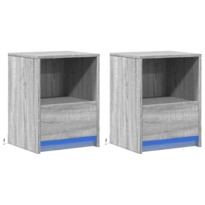 vidaXL Bedside Cabinets with LED Lights 2 pcs Grey Sonoma Engineered Wood