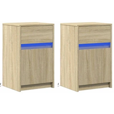 vidaXL Bedside Cabinets with LED Lights 2 pcs Sonoma Oak Engineered Wood