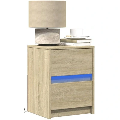 Vidaxl Bedside Cabinets with led Lights 2 pcs Sonoma Oak Engineered Wood