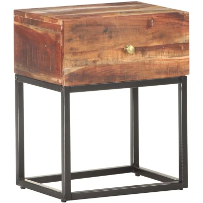 VidaXLIntroduce an air of industrial charm into your home decor with this stylish wooden bedside table! This side table is made of solid rough acacia wood, making it sturdy and stable. The craftsmanship and the beautiful wood grains make every piece of furniture unique and slightly different from the next. The nightstand is equipped with 1 drawer, providing ample space to keep any items you'd like well organised. What's more, the iron base adds to its sturdiness. Important note: The wood grains and colours vary from piece to piece, making each bedside cabinet unique.